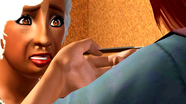 Vaikka yleensä en pidä ihan näin pelkistetyistä ja hoikista simeistä, Shannon on minusta yllättävän kaunis. Toivoisin geeneihin tulevaisuudessa myös vähän kapeampaa kasvojen mallia, joten Shannon on ehdottomasti hyvä tulevaisuuden äiti Carlin lapsille. Juu, kyllä mä pelatessa pyrin löytämään simeilleni pareiksi jotain muita kuin ihan perussimien näköisiä tapauksia, joita valitettavasti tulee suurin osa kun kaupungin väestö alkaa vanheta ja kuolla pois. Tässä mun käyttämässä kaupungissa taas muita ei edes löydy, sillä tosiaan ladattu MySims Realtysta ilman simejä.